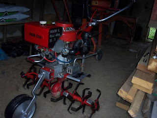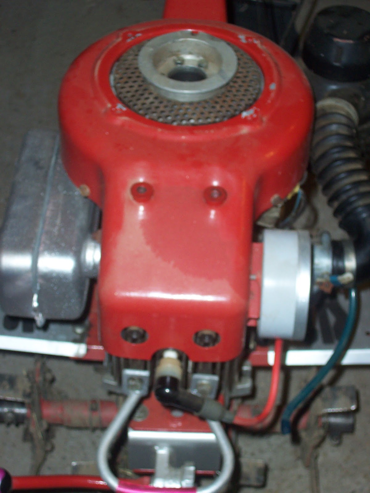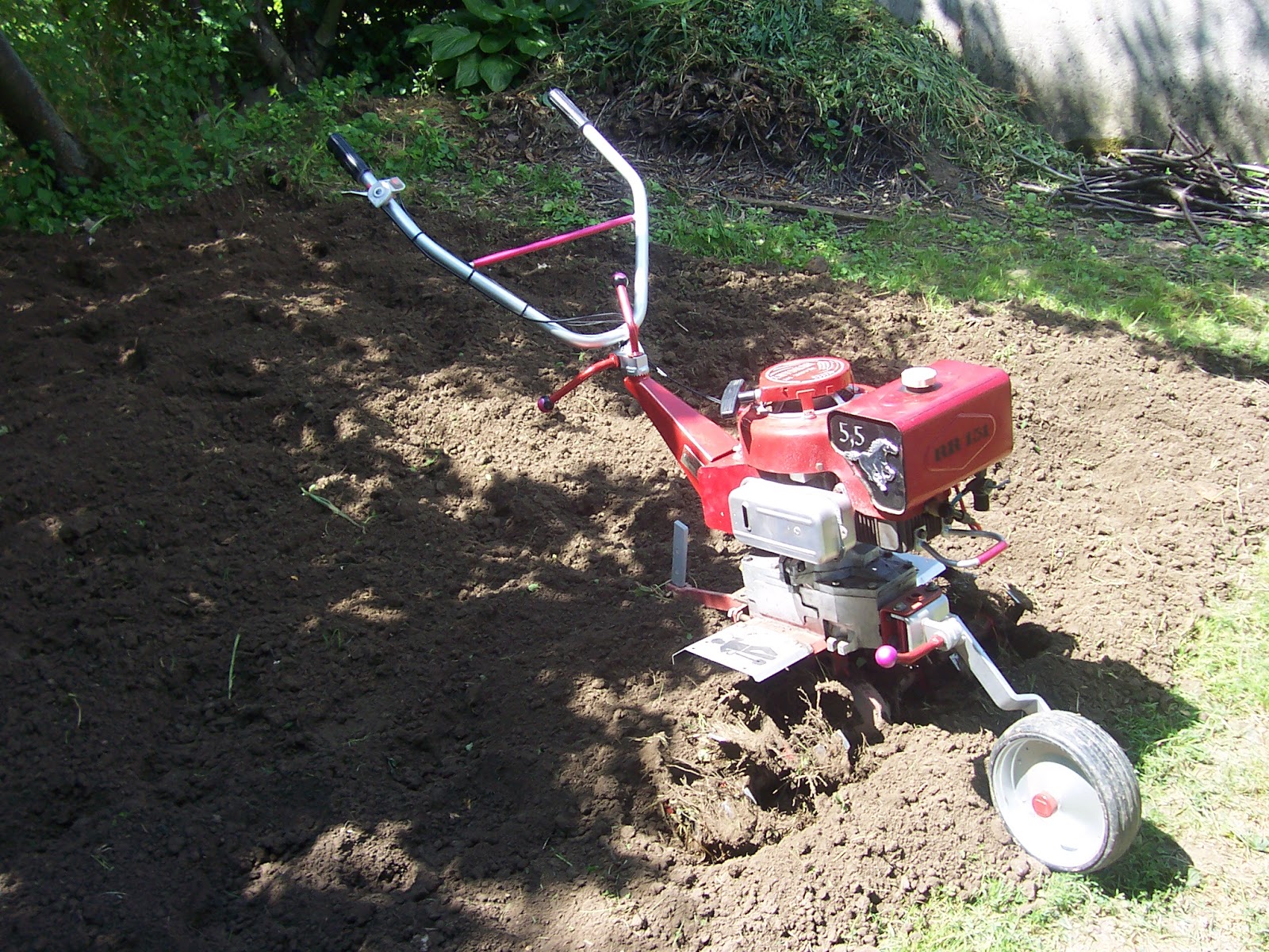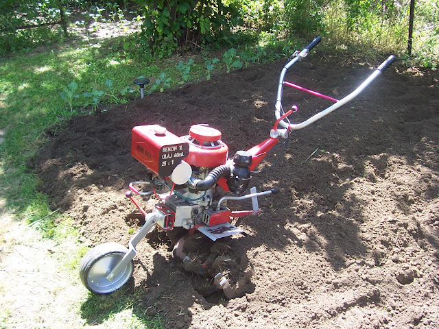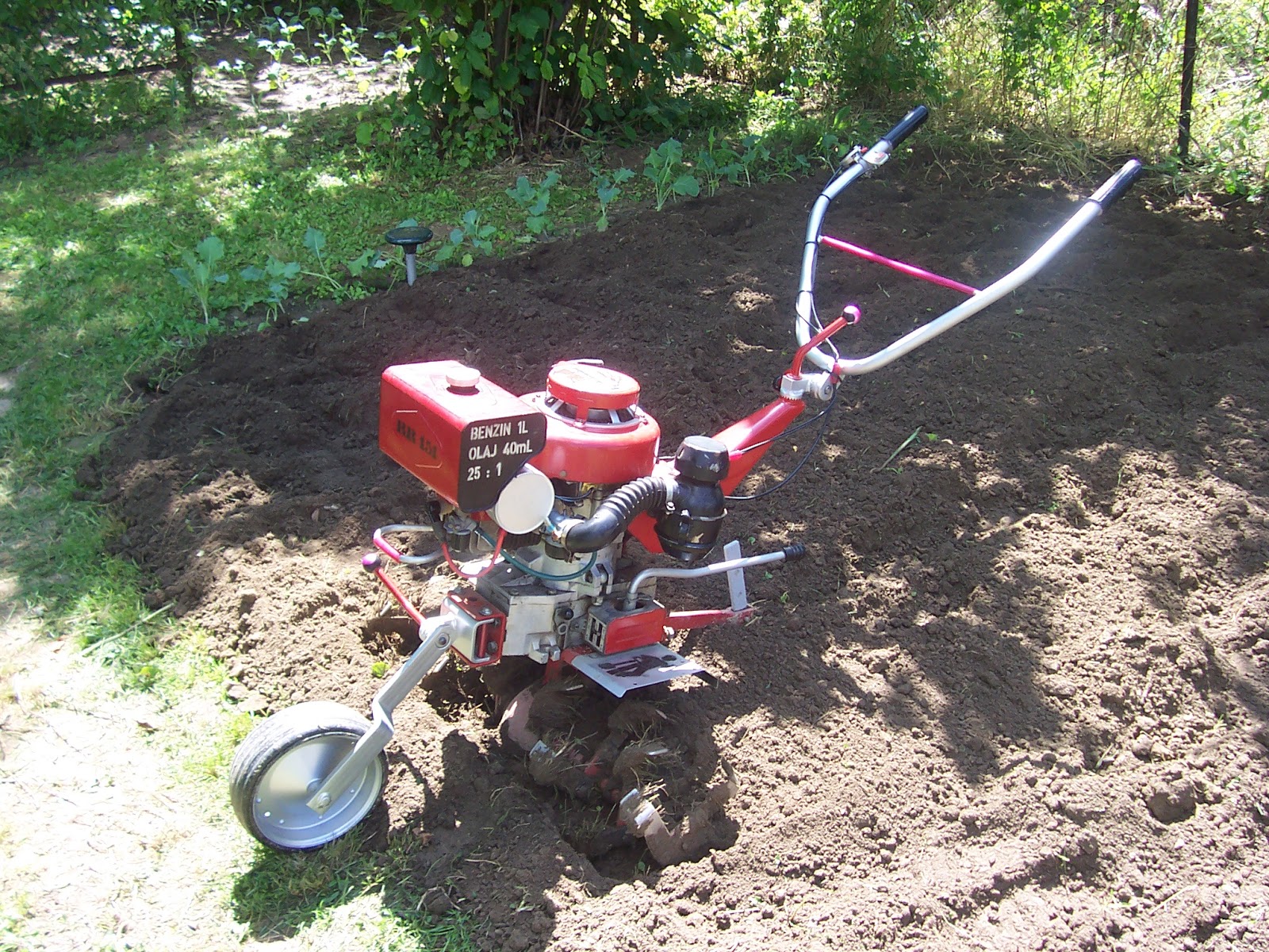 Munka közben érezhetően csökkent a fordulat, gyengült a gép, mintha valaki szorongatta volna a benzincsövet :) gáz vissza, sebességváltás, szivató buzera, új próba...