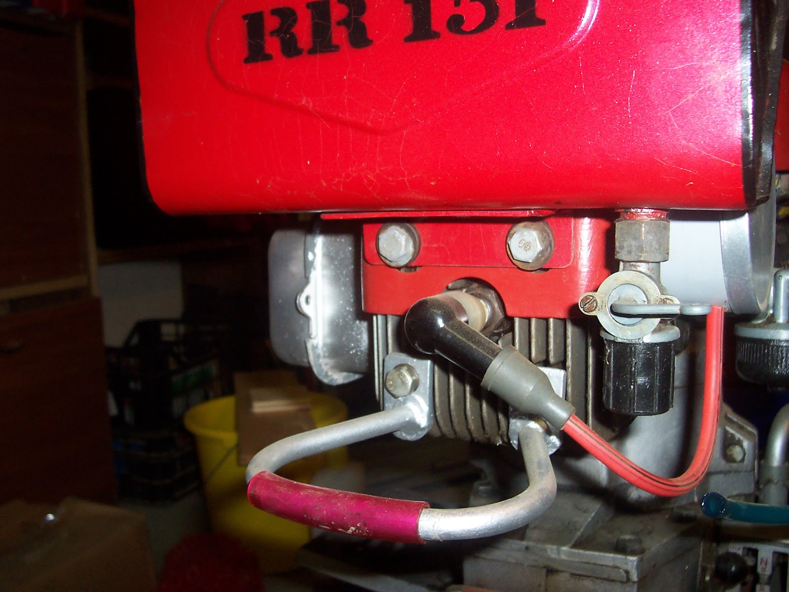 Aztán lehúztam a tankról, illetve a benzintartályról az üzemanyagcsövet. Mivel igen előrelátólan NEM készítettem ide edényzetet a csőben lévű üzemanyag felfogásához, az meg ismeri a gravitációt, a matéria szépen a műhelyem betonjára folyamodott. Hát így jártam.
