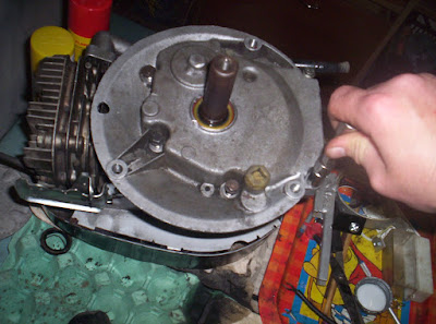 Ezek után a dolgunk csak annyi, hogy a helyére tesszük a hézagoló alátétet- a tengelyre-, bepozícionáljuk az olajszivattyút- az ellenoldalon van helye a 'fejének', megolajozzuk a tengelyt meg a szimeringet, és összetesszük a motort.